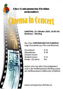 Wir, der Contrapunctus Floridus präsentieren, unter der musikalischen Leitung von Ulrike Koblmüller, ein vielfältiges Programm bekannter Melodien aus Film und Musical – von Disney-Magie über die unvergesslichen Werke von Andrew Lloyd Webber bis hin zu bekannten Melodien aus Filmen wie Comedian Harmonists oder Sister Act.